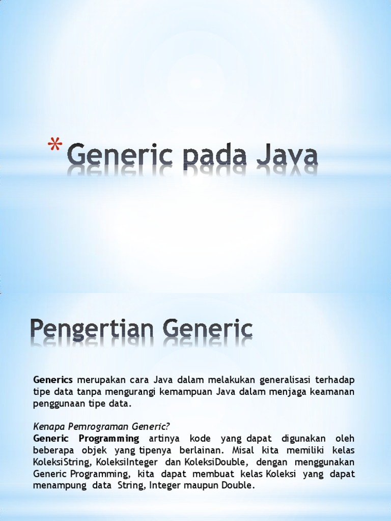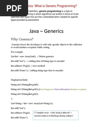 View Need For Generic Code In Java Background. If we already know that our list only holds string data then we need not to typecast it every time. Generics are a facility of generic programming that were added to the java programming language in 2004 within version j2se 5.0.